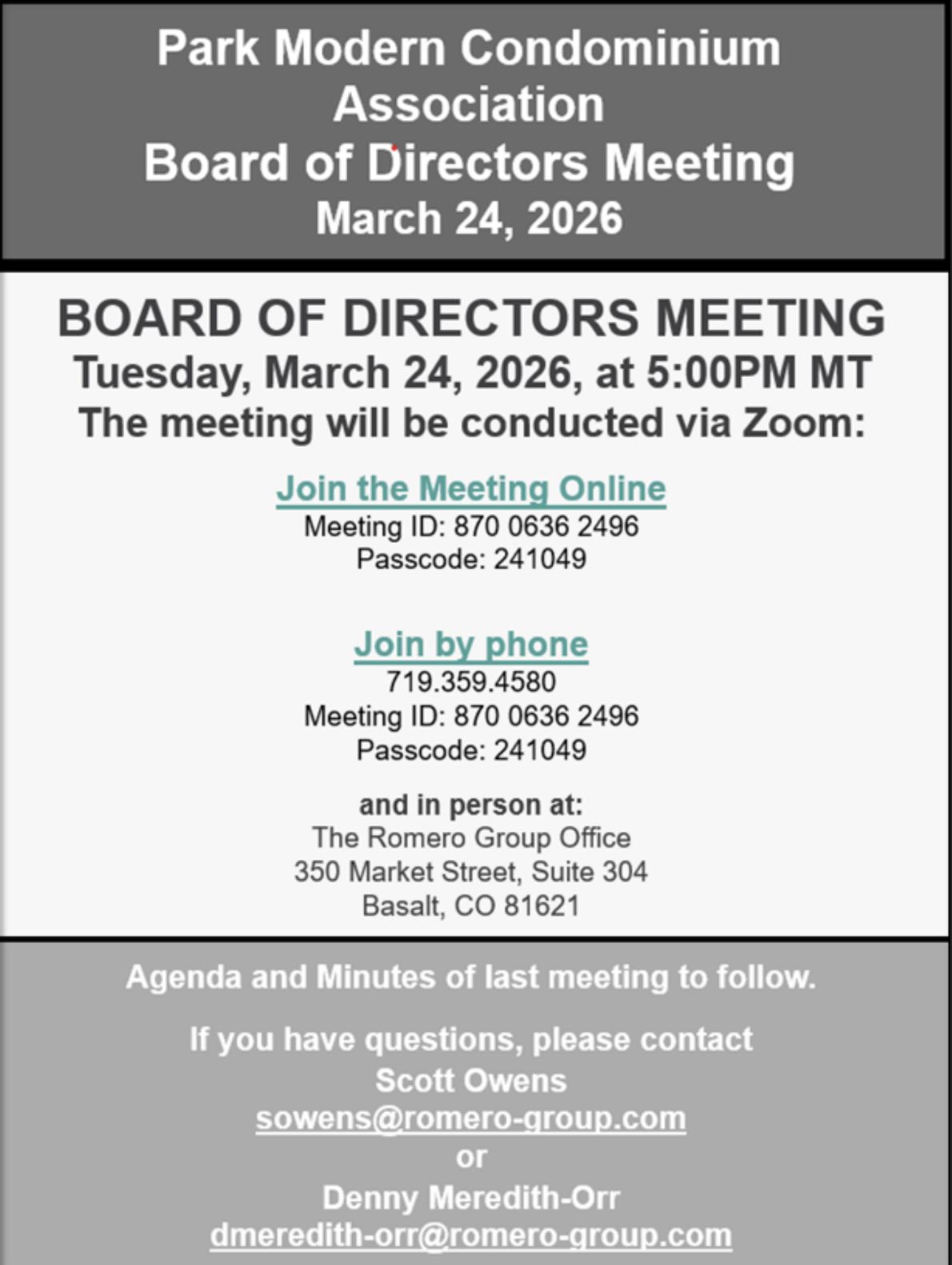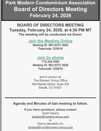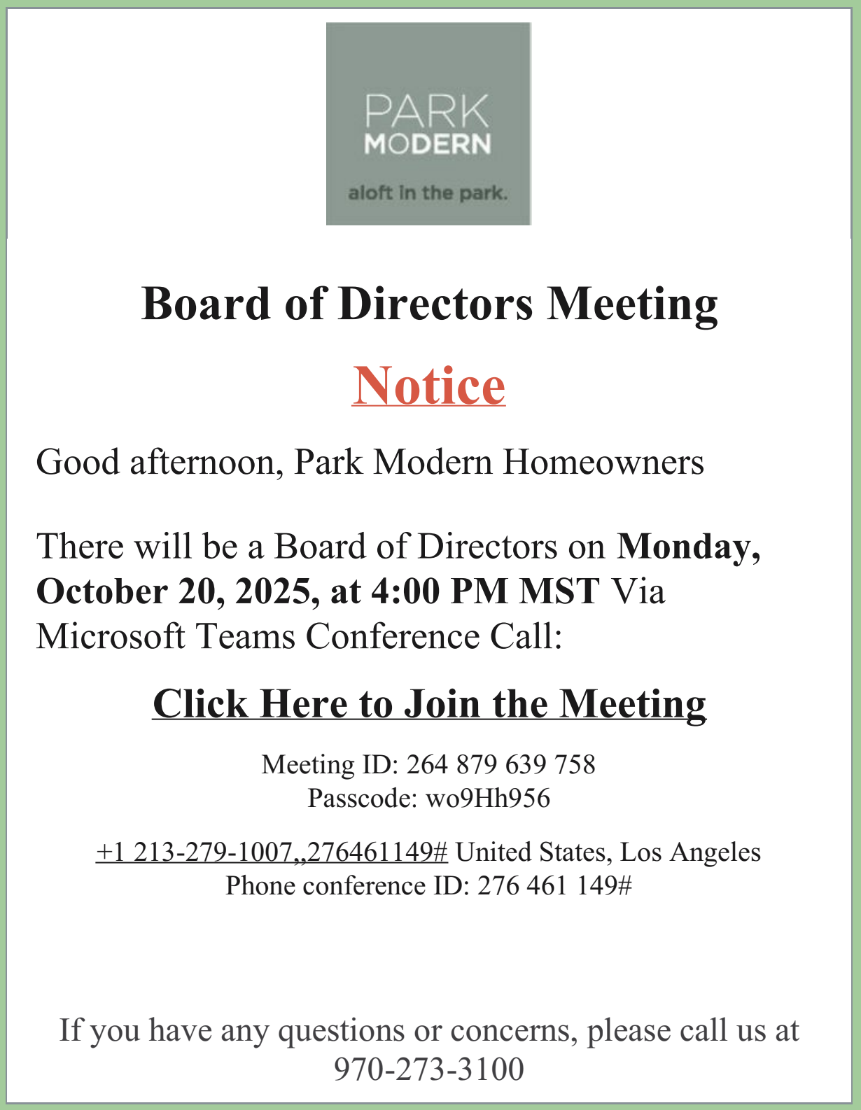 The Park Modern Association strives to provide an authentic community atmosphere to everyone that offers variety and appeal to all our residents. Please use the button below to access our Community Documents & Notices.