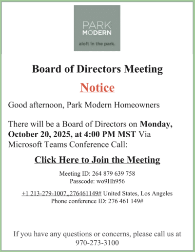 The Park Modern Association strives to provide an authentic community atmosphere to everyone that offers variety and appeal to all our residents. Please use the button below to access our Community Documents & Notices.